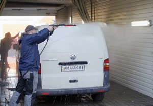 Второй этап — с помощью пеногенератора на автомобиль наносится специальное моющее средство. Оно легко справляется с трудносмываемой грязью. Главное не спешить, смытая раньше времени пена — деньги клиента на ветер.