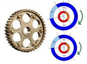 Вопрос о том, когда мотор работает лучше — при фазах, сдвинутых вперед или назад, не правомерен. Именно соблюдение эффективных фаз газораспределения (ФГР) обеспечивает оптимальные характеристики силового агрегата. Разрезная шестерня распредвала дает возможность не ослабляя натяжения ремня ГРМ, изменить положение распредвала относительно коленвала. Причем шаг настройки калибруется на десятые доли градуса.