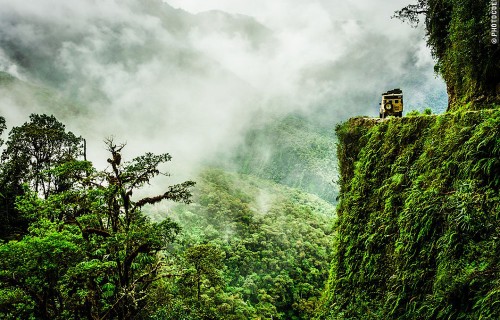 1. Северная дорога Юнгас или Дорога смерти, Боливия. Считается самой опасной дорогой в мире. Маршрут частично проходит по краю скалы на высоте до 600 метров, без каких-либо ограждений. Почти на всем протяжении дороги ее ширина не превышает 3-х с половиной метров, что представляет большие сложности для разъезда встречных автомобилей. Особенно в дождливый сезон, когда и без того опасная дорога превращается в смертельный аттракцион. Сейчас Дорога смерти используется в основном в туристических целях, поскольку недавно был открыт объездной маршрут.