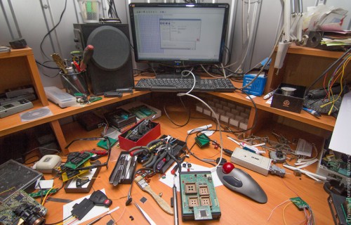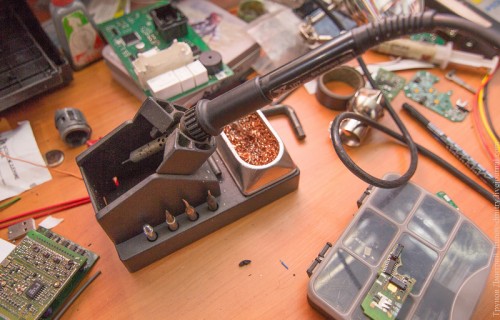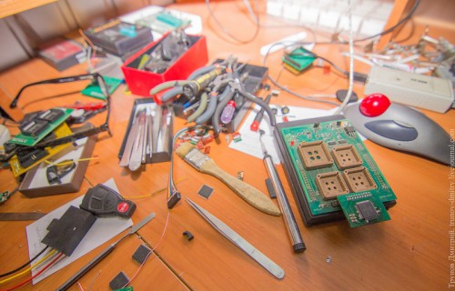 12. Огромная куча неведомых микросхем, паяльник, лупа и много чего еще.