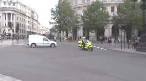 На видео видно как мотоциклист едет с мигалками по Лондону. Погоня за нарушителем? Нет, это мотоциклист–фельдшер.