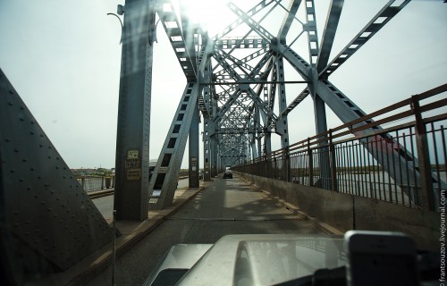 1. Покинули Астрахань. Судя по рекламе на пролетах моста — эвакуация здесь весьма востребованный бизнес!