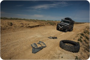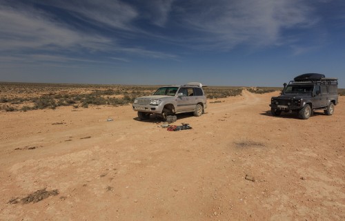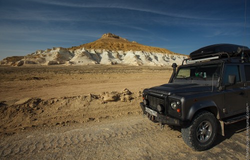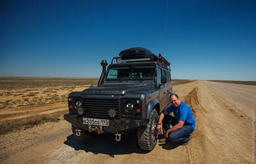 32. Накануне в тех краях мы встретили Лэнд Крузер, у которого полетел ступичный подшипник. Первый вопрос от парней: «есть ли у вас вода?». Надо было видеть, с какой жадностью они набросились на бутылку. Шутка ли — жара под сорок градусов, машина не на ходу, ближайший населенный пункт за сотню километров, ну а степь ошибок не прощает…