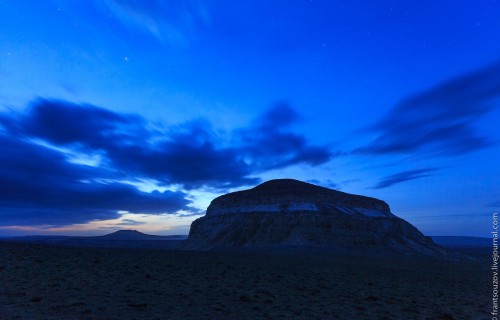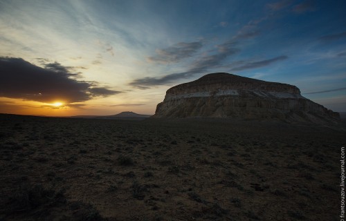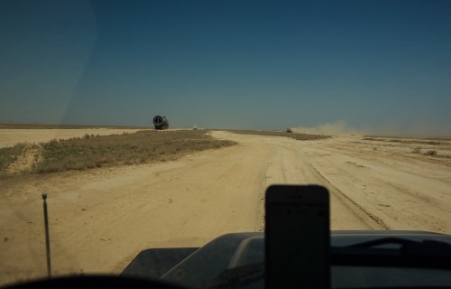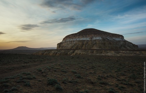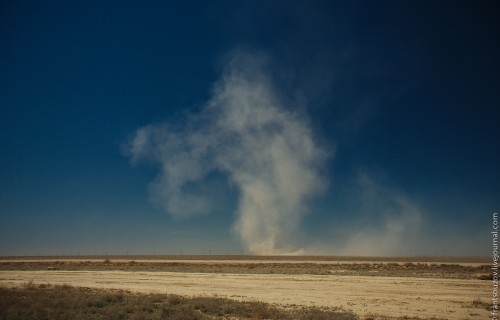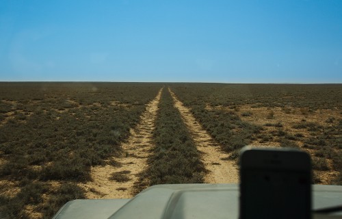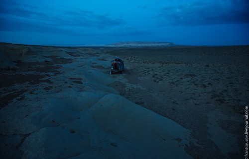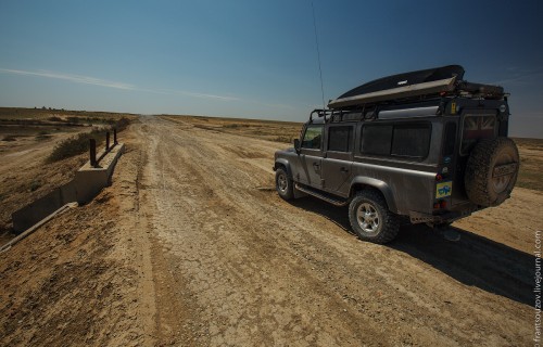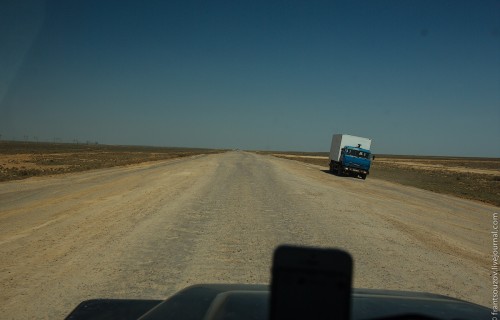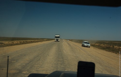 30. Раз уж этот пост посвящен дороге, то, забегая вперед, скажу, что обратно с Мангышлака мы решили выбираться по степи. Те же 250 километров, но ты едешь совершенно один, прямо до горизонта идут относительно ровные грунтовки, а вокруг бескрайняя степь. Грунтовок здесь тысячи, временами они пересекаются между собой хитрыми сплетениями, так что остается лишь ехать, придерживаясь ориентировочного направления на финиш.