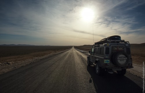 13. Теперь о дороге. Когда-то очень давно тут был асфальт, а ныне — лишь его остатки. Более двухсот километров «стиральной доски». На Дэфе на спущенных 33″колесах было нереально ехать более 40км/ч — чувствуешь, как вибрация просто убивает подвеску, а зубы начинают стучать.