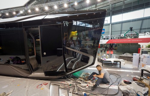 02. На стенде стоит не макет, а полноценный прототип. То есть, его завтра можно брать и ставить на рельсы. Первые серийные образцы появятся уже осенью, тогда же начнутся испытание и в начале следующего года выпуск. Разработчики уверяют, что изменения будут минимальны, не более 10%.