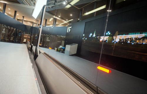 26. Двери теперь будут открываться по требованию. Привод бесшумный и очень плавный. Зажатие и так называемое «протаскивание» пассажира исключают три системы. Во-первых, в раме дверного проема стоят сенсорны, которые не дают закрываться двери, если пассажир еще не вышел. Во-вторых, есть система, реагирующая на препятствие к закрытию двери. Достаточно придержать закрывающуюся створку, как она отреагирует и дверь вновь распахнется. Третья система безопасности завязана на блокировке возможности начать движение с не плотно закрытой дверью. очевидно, то вагон не сможет начать движение.