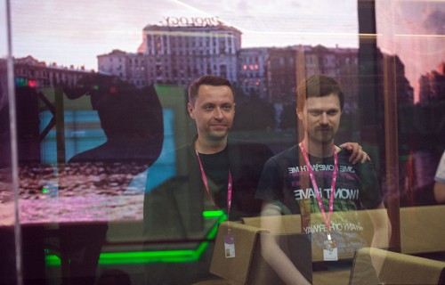 09. Дизайнер Алексей Маслов (справа) и конструктор нового трамвая (в кабине, не помню, как зовут), ОКБ «Атом».