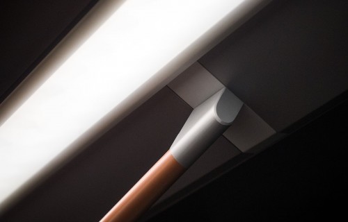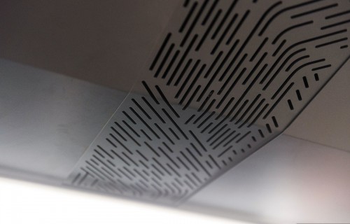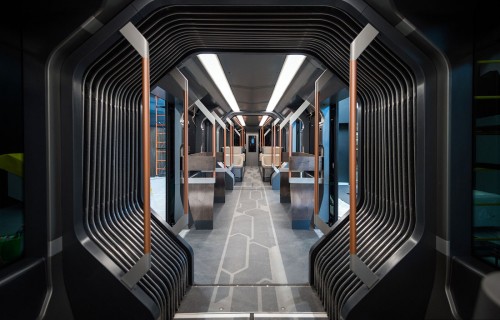 29. На потолке прорези для кондиционеров и динамиков. Все сделано по индивидуальному проекту. В трамвае все элементы дизайна уникальные.