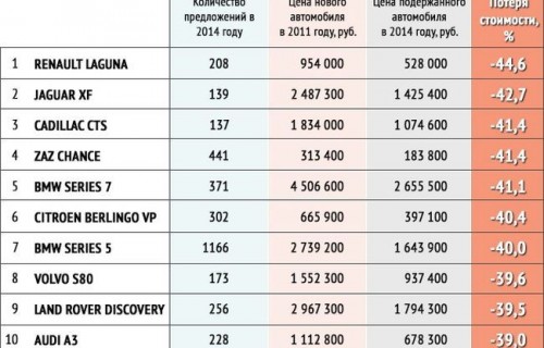 Топ-10 автомобилей с максимальной потерей стоимости за три года