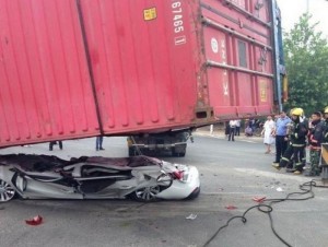 На днях в одном провинциальном китайском городке с грузовика свалился контейнер. Прямо на проезжавшую рядом машину, расплющив ее в лепешку.
