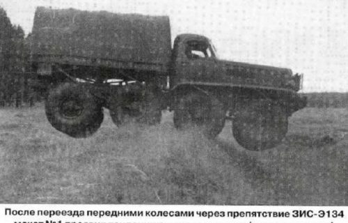 Поскольку опыта разработки таких машин не было, то для изучения вопросов повышения проходимости колесных автомобилей, а также для оценки влияния отдельных конструктивных параметров на проходимость в течение июля-августа 1955 г. был построен опытный четырехосный (8?8) грузовой автомобиль ЗИС-Э134 макет №1.