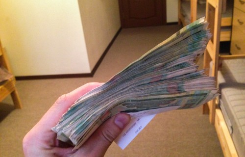 Конечно у меня никаких счетов в белорусских банках не было, поэтому пришлось платить наличкой. На самом деле собирать 100 миллионов белорусских рублей – очень сомнительное удовольствие. Лимиты на снятие наличных здорово попортят вам нервы, но даже это не главное. Проблема в том, что максимальный номинал купюры – 200.000 рублей и 100 миллионов даже в самых крупных купюрах превращаются в очень внушительную пачку. На снимке всего лишь 25 миллионов, поэтому финальная пачка была в 4 раза толще!