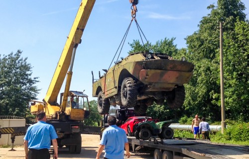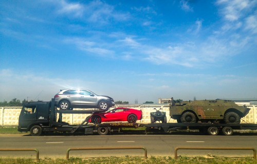 Вы наверняка заметили, что броневик был не единственным грузом. Компания и правда подобралась красивая. Вместе с БРДМ на автовозе ехали: