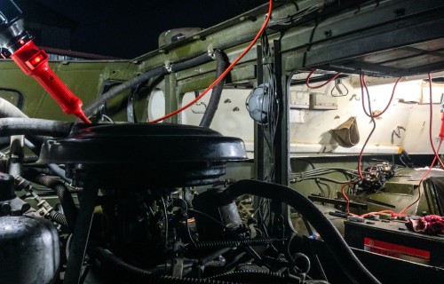 К позднему вечеру удалось поставить аккумуляторы и накачать колеса. Увы, один из бензобаков оказался дырявым, а система электропроводки ввела меня в ступор. Вот казалось бы, если вы видите два черных аккумуляторных провода и один белый, логично предположить, что белый идет на плюс, а черные – на массу. Но нет, один из черных проводов тоже идет на плюс, это оказалось питание стартера.