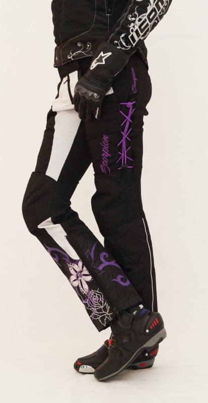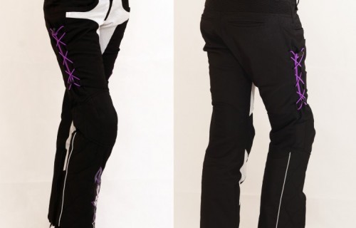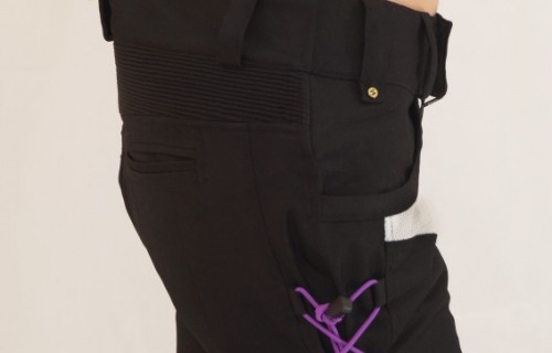 Исправляется обычным ремнем. А благодаря фиолетовым резинкам хорошо утягиваются по бедрам. С длиной, конечно дискомфорта больше. Сидя на моте (тогда еще в кедах) очень сильно подскакивают. С длиной брюк у меня, к слову сказать, извечная беда. Но если их носить на бедрах, то длина вполне себе сносна (Ходить, но не ездить). С покупкой бот все стало красиво и хорошо. Боты высокие — незаметно, что штанцы немного подстрелены, а если заправить, так вообще шик.