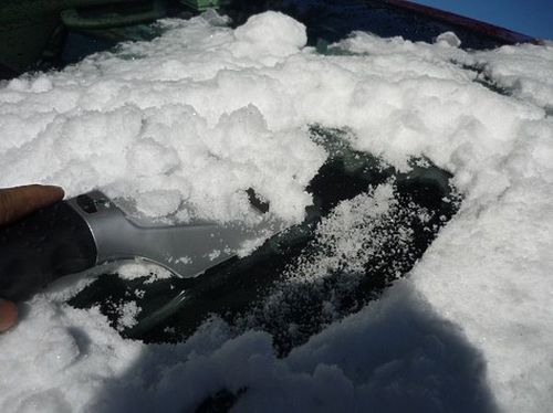 Если подходишь к проблеме разморозки стекол машины уж совсем экономно, наверняка обратишь внимание на скребок с электроподогревом. Довольно массивная вещица напоминает металлический совок с приделанным к нему нагревательным элементом. Питается через шнур от прикуривателя машины. Назвать такое устройство фантастически эффективным не получится, но потихоньку лед он таки плавит. В тандеме с работающей автомобильной «печкой» работает вообще замечательно. Да и стоит девайс недорого – всего 400-700 рублей. Столь различные ценники объясняются лишь жадностью тех или иных продавцов.