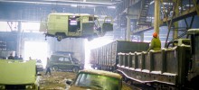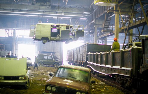 17. Потом машины грузят на платформы и перегоняют поближе к прессу.