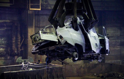 Побывал на заводе, который собирает и прессует лом для переплавки. Сейчас они активно крушат и кромсают машины, сданные по программе утилизации. Для любителя ВАЗовской классики зрелища душераздирающее.