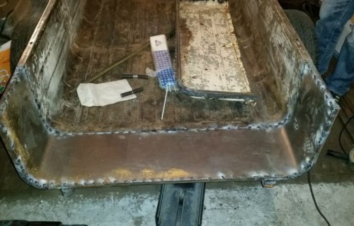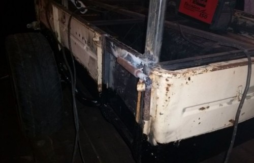 Предвидя комментарии про амортизаторы: да, желательно, но доступных и надежных вариантов создания подвески на базе имеющегося — отсутствуют. Учитывая малое расстояние до площадки (около 5 км по асфальту), решаем жестко вварить балку, и ограничивать максимальную скорость с прицепом.