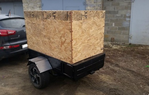 Эмаль высохла, начинаем обшивать прицеп листами ОСБ, отданными следующим добрым человеком, по совместительству генералом нашего пейнтбольного клуба)