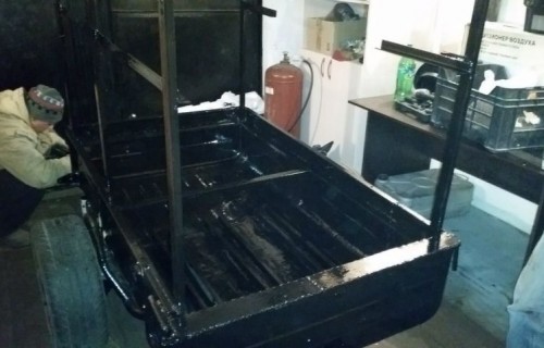 довариваем, дошкуриваем и начинаем покрывать специальной грунт-эмалью. Прицеп обувается еще одним добрым человеком в пятнадцатые катки.