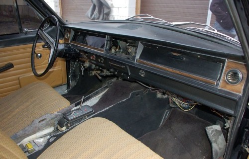 Интерьер пока в таком состоянии. Машина требует очередных финансовых вливаний… Что точно, передняя панель сохранится оригинальной, а вот каким будет ее «наполнение», сейчас неизвестно