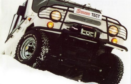 В ходовой тоже не обошлось без нововведений. Спереди, вместо убогих барабанных, появились эффективные вентилируемые дисковые тормоза. Оба моста были оснащены длинноходными газонаполненными амортизаторами Monroe Sensatrac в исполнении «off-road». На оси передних колес золотом засверкали качественные муфты подключения американской фирмы ММ. Передняя часть вездехода лишилась стандартного бампера. Впрочем, сменившая его функциональная стальная труба выглядела довольно куцо, что несколько оттенялось оригинальным кенгурином и мощной электрической лебедкой Ramsey, развивающей тяговое усилие 3.6 тонны.