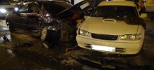 От удара «Хонда» развернулась и совершила наезд на световую опору и в автомашину «Тойота Марк-2», стоящую на автостоянке по улице Ленина. От удара «Марк-2» снесло на автомобиль «Тойота Королла», который находился рядом.