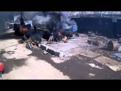 А на этом ролике тоже не соблюдения техники безопасности резчика. Вентель с баллона открутил, а газолин остался. Нужно было в костре выжечь либо полный воды налить воды налить перед резкой.