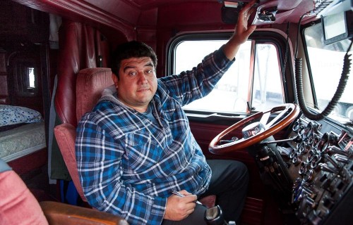Дальнобойщик Карл Вера в своем грузовике Peterbilt.