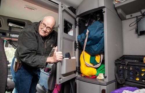 65-летний Фред Фредриксон. Водит уже 35 лет. Сейчас сидит за рулем фуры Volvo 2013 от мебельной компании Ashley Furniture.