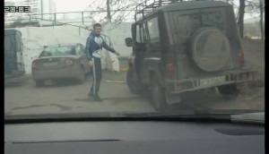 21.04.2012, около 16:00, перекрёсток Кировоградской и Днепропетровской. Девятка выезжала на Кировоградскую на загоревшийся зелёный, УАЗ неожиданно прилетел справа на уверенный красный. Хорошо протаранил девятку (передок в хлам) и стал резко скрываться с места ДТП. Я решил его догнать, чтобы чётко зафиксировать номера и водителя. Догнал во дворе, зафиксировал (Р167ОА97), а потом УАЗик использовал скилл езды по бездорожью, которого у моей машины нет.