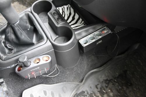 Во время пробега мы планируем использовать немало электронных аксессуаров, требующих питания от 12-вольтовой сети. «Прикуриватель» в Гранте всего один, поэтому мы решили установить в автомобиль дополнительные разъемы для надежности и удобства. К сожалению, фирменный сервис не захотел оказать нам подобную услугу («мы такое не делаем»), вместо чего отправил нас в «любой другой сервис», который имеет сертификат на работы подобного плана.