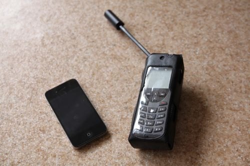 9555 Satellite Phone (справа) в сравнении с iPhone 4