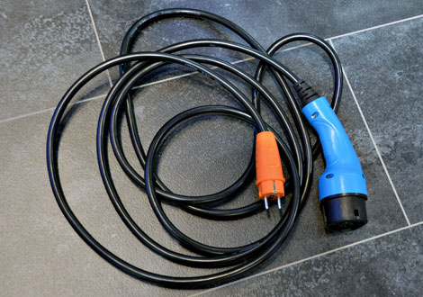 При зарядке дома, в гараже или на даче используется шнур с бытовой вилкой на одном конце и вилкой-«пистолетом» на другой