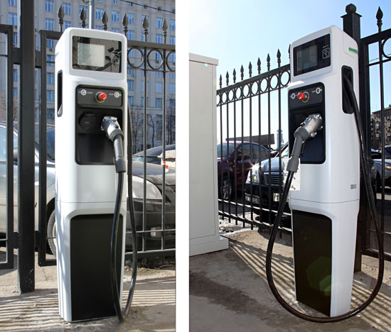 Главное достоинство уличных зарядных станций — мощность, которую не в состоянии обеспечить бытовая электросеть, а значит, малое время заправки — от нескольких часов до нескольких десятков минут. Недостаток — редкость сети станций в Москве и практически полное отсутствие электрозаправок в регионах страны.
