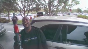 Несколько дней назад Джею Лено крупно повезло — на заправку приехали Уилл и Монифа. Уилл — бармен, Монифа — фитнес-тренер, они женаты 12 лет. Простые, веселые, открытые люди, искренне любящие друг друга и жизнь, умеющие получать удовольствие от каждого момента, пусть даже такого неожиданного. Вместо того, чтобы стесняться и скромничать, они выдали фантастически забавное, доброе и умилительное шоу возле своей машины, покорив сначала ведущего и телезрителей, а затем и весь интернет.