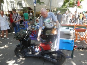 Путешественники, тем временем, с удовольствием делились информацией о транспорте, на котором будут колесить по самому большому континенту планеты. Максимальная скорость мопедов (двигатель объемом 50 куб. см) – всего 55 км в час: «В день будем проезжать до 400 км, поэтому ни один гаишник нас не остановит за превышение скорости. Не везде по дороге будут заправки, поэтому пришлось приварить к мопедам дополнительные бензобаки на 20 литров», — говорит Теодор.