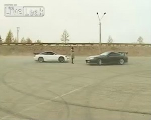 Дрифт вокруг девушек обычное упражнение, которое частенько любят выполнять дрифтеры. Ведь что может быть зрелищнее длинноногой девушки и быстрого авто, выпускающего дым из-под колес? Конечно, во время тренировок частенько используют манекены, но даже после сотни пробных заездов может случится форс-мажор…