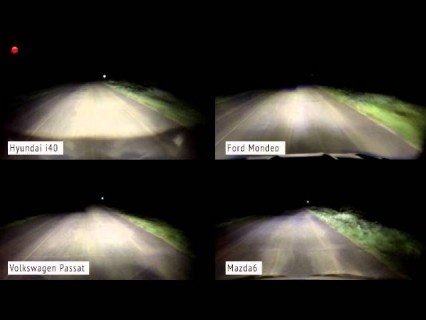 В этом «динамическом» тесте фар Авторевю — Volkswagen Passat, Ford Mondeo, Mazda 6 и Hyundai i40. Проверили на неосвещенных дорогах полигона насколько корректно работает автоматика управления адаптивными светодиодными фарами. Автомобили с включенным дальним светом фар сперва догоняли попутный автомобиль, потом их ждал встречный разъезд, а в довершение — горный серпантин