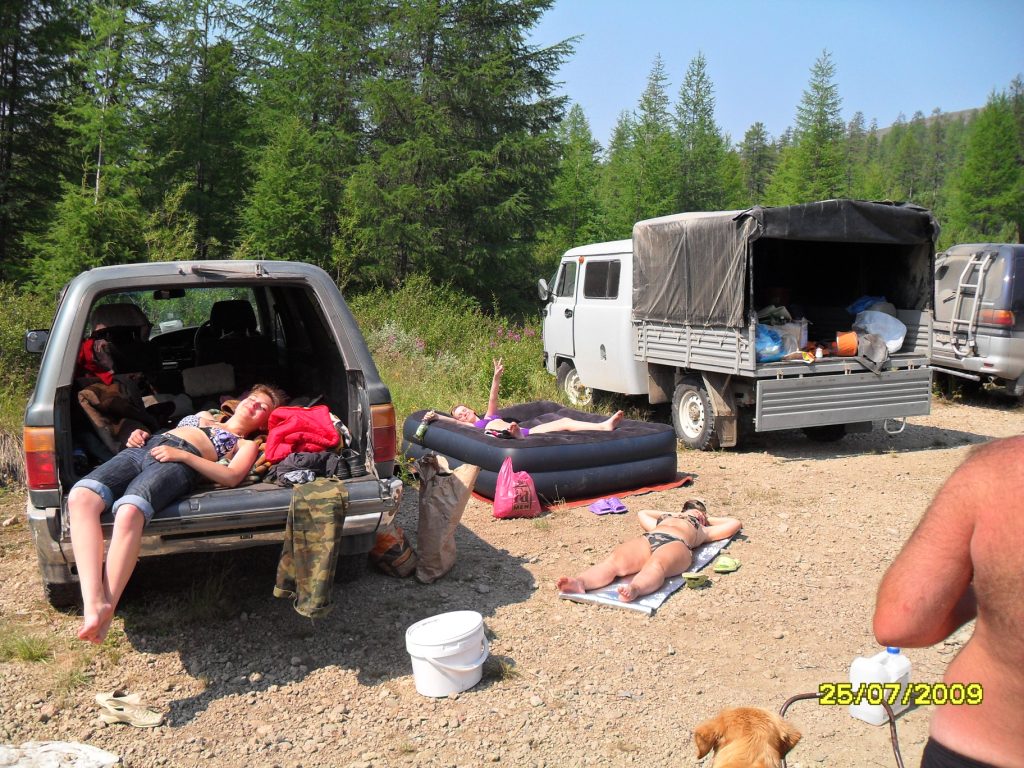 Олег1 Измени время хотя-бы на 19 часов. Причина: Вы едете не на джипах, а до поворота на Гранд ехать 2.3 часа на Крузаке (сам замерял). Дорога не очень, в особенности в районе Карамкена и Гранда. +Вам потребуется еще время доехать до самого озера. Так что будете как минимум затемно. Учитывайте, что при плохой дороге и не спущенных чуть-чуть колесах можно эти самые колеса камнями проколоть. (Когда езжу по трассе, то спускаю на 0.1 - 0.2 очка). Рекомендую иметь 2 запаски. ЗЫ: Можешь перезвонить. Телефон у тебя есть. Спасибо за консультацию. Но реально перенести у ребят не получается((( Запаски беру 3, надеюсь не пригодятся)))) Пиво купить уже не успел, Дени извини((( Взял только на себя темного и для ники туборг Грин и Бочка Платинум - что за последнее пиво, я незнаю, проэксперементируем на нике для начала)))) Инсанити -Вэлкам обратно в экипаж!!! -------------------- А всё таки прав был Кутузов: что бы спасти Россию надо сжечь Москву!!!