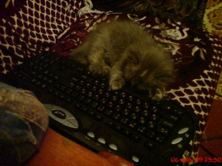 А это моя кися!Порода :Персидский Экстримал! Сначала когда покупал в подарок в Новый год думали что мальчик, его с рождения прозвали Шустриком, но через пару недель она превратилась в кошечку. Отличается сильным характером, выпендрёжностью,мурчалкой, вопелкой, оралкой, кусачестью,царапостью, летательностью,прыгучестью(телик с тумбочкой для нас не преграда) и особой ШКОДНОСТЬЮ, вообщем долго не думали и назвали " ШКОДОЙ" .