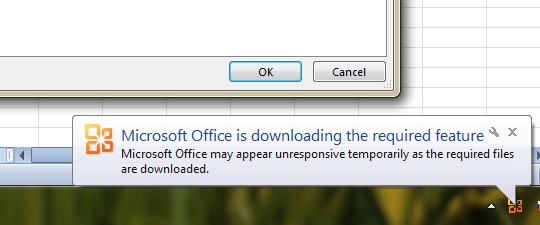 вот кстати вопрос по Office. Как-то при запуске появился вопрос - не желаете ли обновить офис? я сдуру кликнул "да", и теперь при каждом запуске он грузит какую-то фигню с интернета (появляется уведомление как на скриншоте). Проблема в том, что при нашем дохлом интернете этот процесс затягивается до бесконечности, а Офис в это время подвешивается. Где и что нужно отключить, чтобы он больше ничего не качал?..