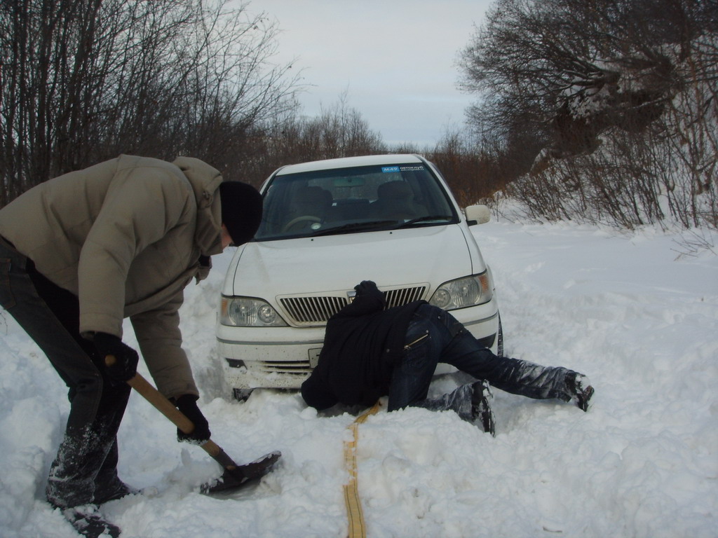 Итак начнем со списка необходимой подготовки автомобиля для поездки: 1. Клиренс. чем больше - тем лучше. Достигается путем замены пружин на новые, аналоги, нормализации пружин, проставок под пружины и под стойки. Установка колес большего диаметра. 2. Колеса. Развитые грунтозацепы в данном случае более важны, чем обилие ламелек. Я для поездок использовал резину Кардиант Полар, она хоть и достаточно шумная и плохо идет по мокрой глине, но в остальном она показала себя хорошо. 3. Днище. Во первых все картеры должны быть защищены хотя бы пластиком. Если вы дружны с головой и не скачете по камням, то этого должно хватить. Другая выпирающая деталь - выхлопная труба. Её можно прижать к днищу путем вытягивания, это остабляет её жесткость, но она становится выше на несколько сантиметров!!! 4. Резиновые коврики в автомбиле - так как вам часто придется копаться в грязи и снеге, то это все окажется в машине. Необходимые аксессуары: 1. Лопата. Лопата должна быть крепкой и по сезону. Штыковая лопата в данном случае малопользительная, но лучше иметь несколько. 2. Веревка. 3. Пара досок 4. Домкрат 5. Фонарик 6. Сотовый телефон 7. Друг на джипе. Дополнительные приспособления для выезда: В продаже имеется большой выбор пластиковых складных сенд-траков по доступной цене. Полезная штука. Если их нет, то можно воспользоваться подручными средтвами. К примеру, если вы сидите в снегу и колесо шливует на скользком льду, то можно использовать ту же веревку, чтобы создать необходимую силу трения, неплохо используются резиновые коврики из машины и мешки из под сахара. Но идеальным решением всех времен и народов - сетка-рабица, её можно заранее прибить к доске. продолжение следует -------------------- 89148508740