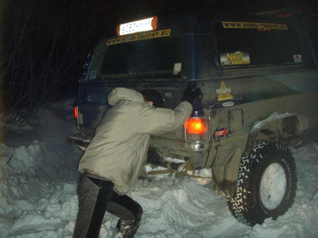 когда засел и Дюйм (а то все расслабились уже) несколько поплохело....лебедка сделала чудо. решили не цепляться....толкали.. сами с помощью общего копания-толкания тоже выбрались. п.с. : когда из сугроба рвет с рёвом тачка гораздо больше твоего роста, такое не забывается))...что там наши рыки... Сообщение отредактировал riko - 24.11.2008, 0:06 -------------------- Быть богатым не значит быть счастливым, но быть счастливым значит быть богатым.---------------------------------------------------------------------------------------------------Www.3moka.ru