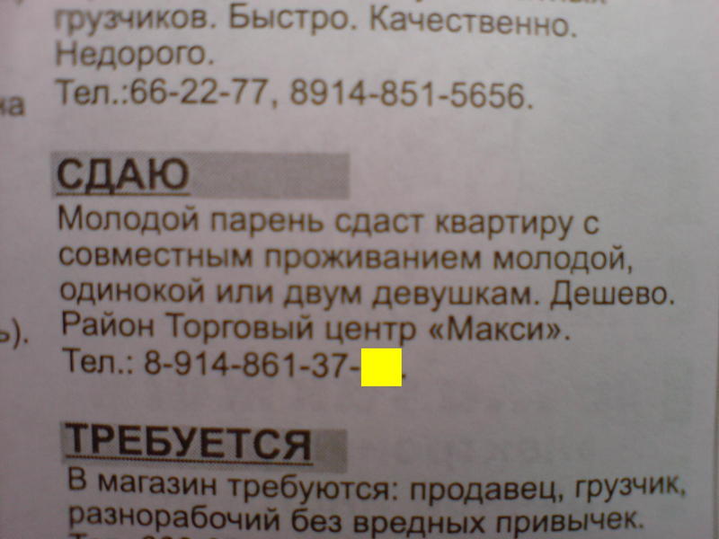 объявление в сегодняшней газете. я смеялсо. Абалдеть, называется "обслужу за материальное вознаграждение" -------------------- Разница других исполнителей, которые пытались перепеть эту песню, в том, что они поют как будто идут на войну, а Цой - будто вернулся оттуда.