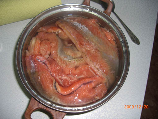 потрошённую красную рыбу, очищают от чешуи, отделяют голову, плавники, режут вдоль позвоночника, отделяют позвоночник и вынимают кости. Затем рыбу засыпают следующеё смесью: на 3,5 кг. два стакана соли крупного помола без горки, 1 стакан сахара (б/г) и в ёмкость (таз) под гнёт на 17 часов. Затем рыбу споласкиваем в получившемся рассоле и ложимна бумагу вниз шкурой, чтобы подсохла, затем чуть подвялить. Нарезаем рыбу кусочками, кто со шкурой, кто удаляет. В банки закручивающиеся поливаем маслом рафинированным. Помещаем в холодное место на хранение. Не делал ещё, но пробывал: рыба - человек!. Сообщение отредактировал Андрей Викторович - 28.8.2013, 20:41 -------------------- Что не сделано - то не сделано. Чем дольче тем габаней!