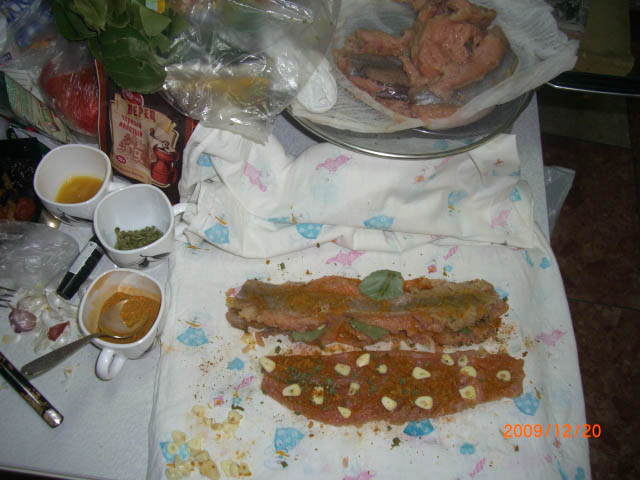 Достаём филе промороженое Делаем тузлук как для икры, и прямо туда, прямо мороженым куском.., некогда мне следить особо за процесом. Часов через 12 - 16 достаю, малость стекёт, потом туда печца, чеснока, петрушек, .., тут главное если взял пиправу какую. чтобы она без соли была.. БЕЗ СОЛИ. И всё это заматываю в марлю, на сутки, в холодильник, Дальше режем с луком, и в банки и сверху маслом., Ну недели полторы можно есть, более незадерживалось Делал так палтуса, есть можно, но не то, по крайней мере лук там не катит точно. -------------------- Почта: maykov@mail.ru ...... icq: 610 723 439 ...... WatsApp 89140319611