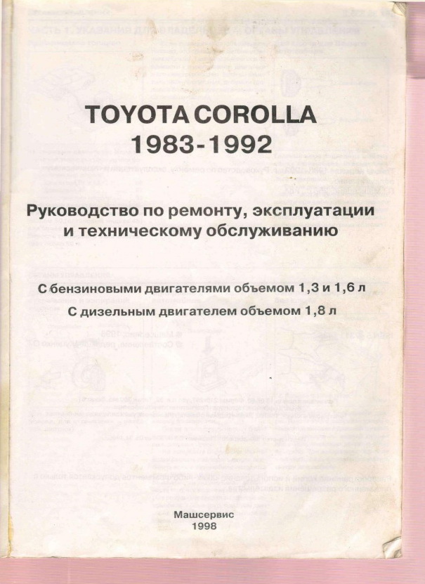 нашел у себя книжку тойота королла, спринтер с 1982 по 1992год.